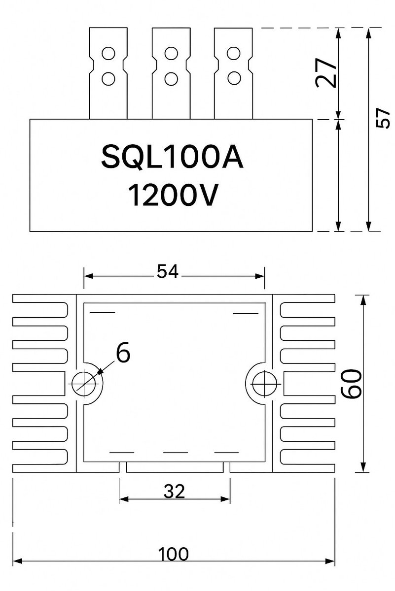 ✅ TRÓJFAZOWY MOSTEK PROSTOWNICZY 100A 1200V SQL100A z radiatorem ✅Mocny mostek prostowniczy SQL100A do zastosowań przemysłowych i serwisowych. Przeznaczony do prostowania napięcia w układach ...