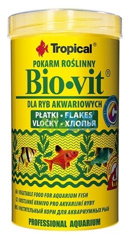 Niezastąpiony w akwariach ogólnych z wielogatunkową obsadą ryb. Optymalnie zbilansowany skład oraz dodatek niezbędnych dla ryb witamin i mikroelementów, w tym pochodzących z zarodków pszennych, zapewniają prawidłowy wzrost i rozwój. Na uwagę zasługuje znaczna zawartość stabilizowanej witaminy C, która między innymi wzmacnia odporność ryb na choroby i przyspiesza gojenie się ran i otarć. Regularne karmienie pokarmem Bio-Vit zmniejsza ryzyko zaparć i stanów zapalnych przewodu pokarmowego, na które podatne są szczególnie ryby roślinożerne, mające długie przewody pokarmowe. O tych właściwościach pokarmu decyduje wysoka zawartość substancji balastowych, w tym błonnika, które pobudzają perystaltykę jelit oraz substancje biologicznie czynne obecne w pokrzywie.