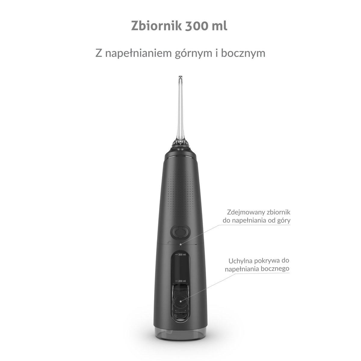 - Pojemny zbiornik 300 ml: Wystarcza na jedno czyszczenie; możliwość stosowania płynów do płukania ust dla dodatkowej świeżości.