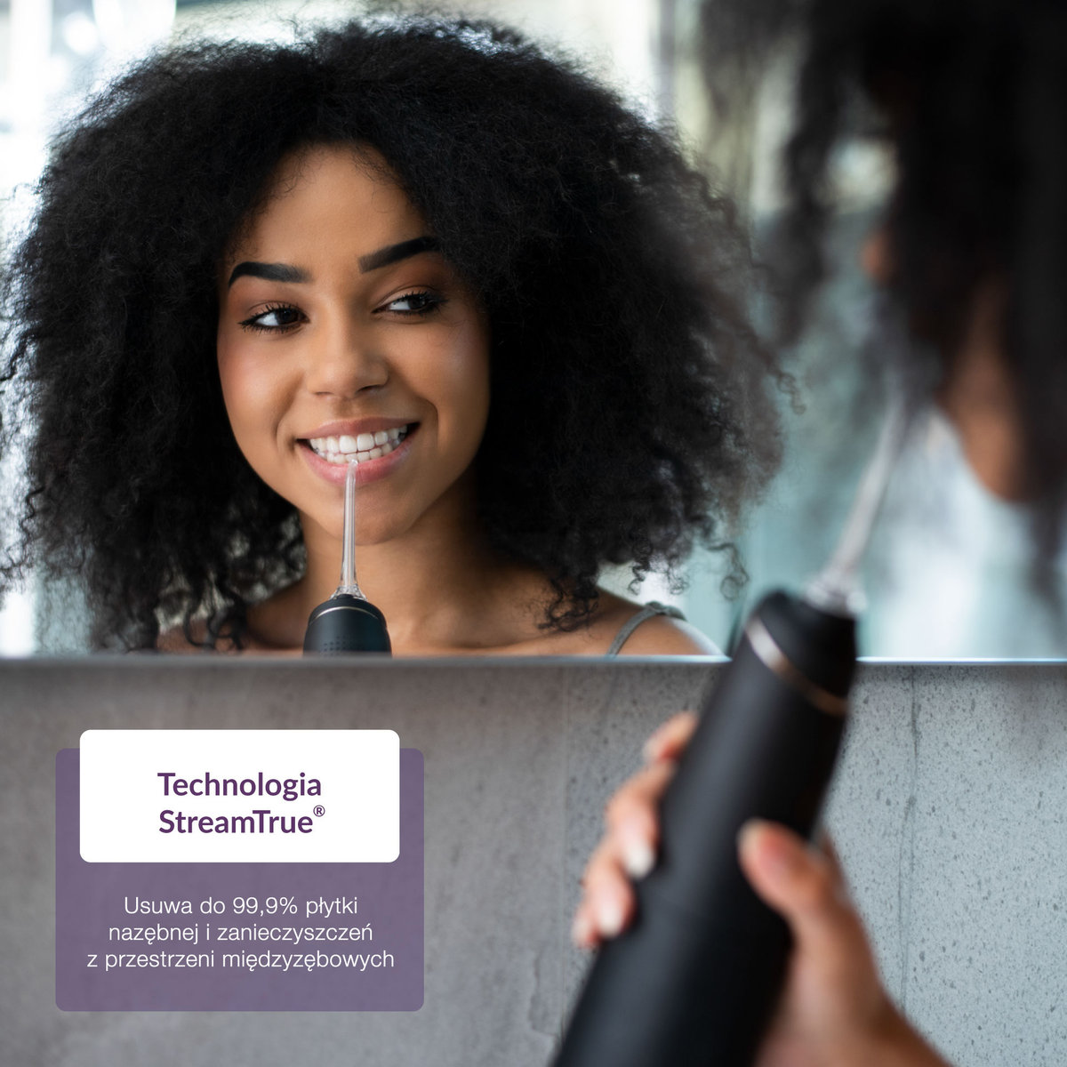 - Technologia StreamTrue® i PulseTrue®: Połączenie mikropęcherzyków wody i powietrza oraz pulsacji poprawia efektywność czyszczenia, masuje dziąsła i wspomaga ich regenerację.
