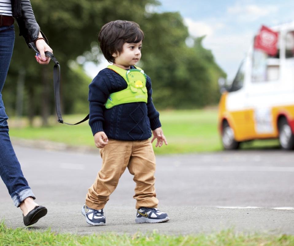Szelki bezpieczeństwa Innowacyjne szelki bezpieczeństwa dla dzieci zapinane z tyłu za pomocą jednego szybkiego i prostego ruchu. klamra pozwalająca rodzicom z ...