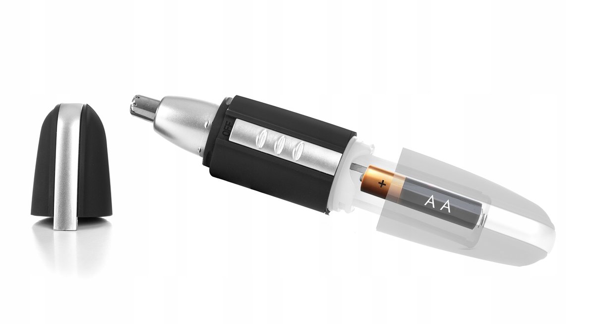 Trymer działa na baterie 1 sztuka popularnego paluszka AA, wystarczy na dziesiątki strzyżeń.