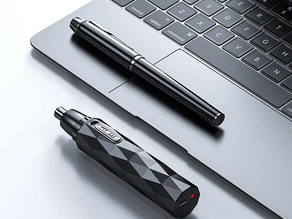 Trymer to eleganckie urządzenie dla mężczyzn do pielęgnacji brody, wąsów, uszu, nosa i ciała. Dzięki jego starannemu wykonaniu, zapewnia dużą precyzję w goleniu. Trymer jest mały i dyskretny świetnie nada sie w podróż. Trymer ma nowoczesny i elegancki wygląd.