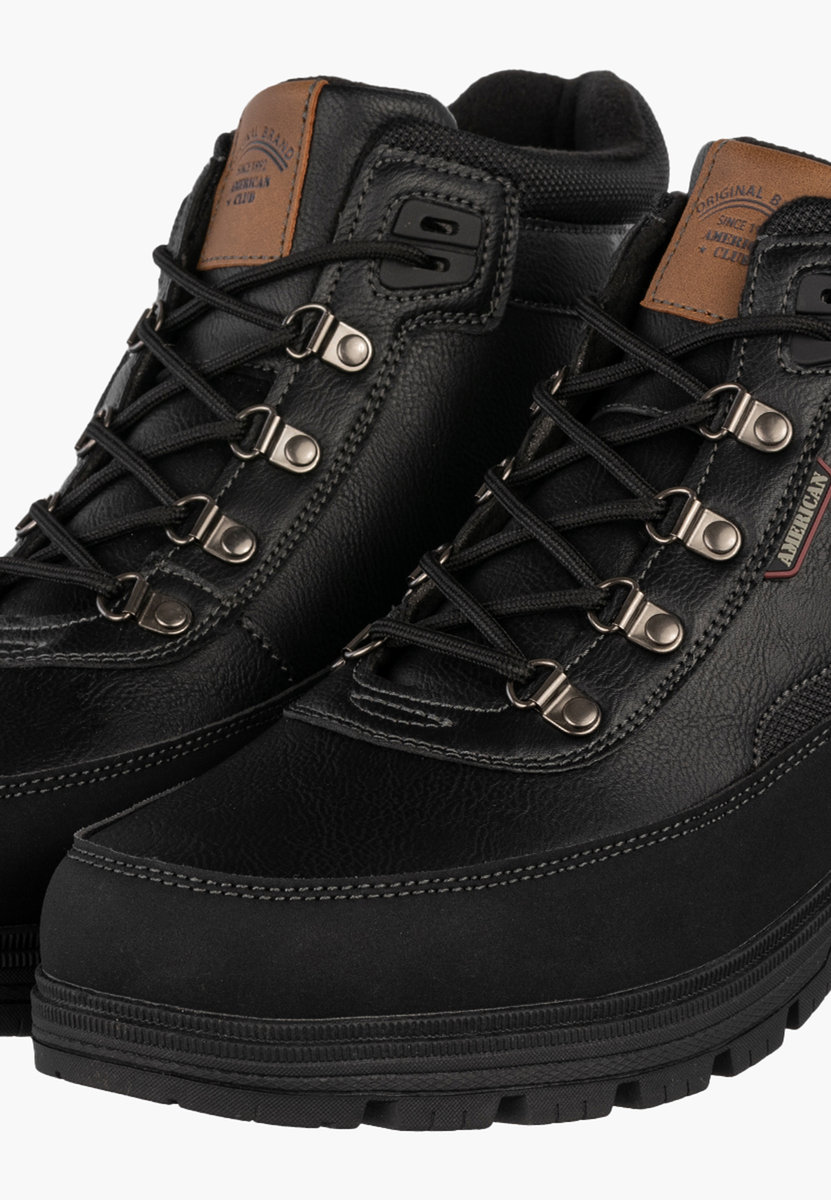 Nowoczesne męskie trzewiki AMERICAN CLUB to idealne połączenie stylu, funkcjonalności i trwałości. Wykonane z wysokiej jakości ekoskóry i ocieplane wewnątrz, gwarantują komfort cieplny oraz odporność na trudne warunki pogodowe. Ich solidna, antypoślizgowa podeszwa i dynamiczny fason sprawiają, że te czarne buty męskie zimowe są doskonałe na każdy dzień sezonu.