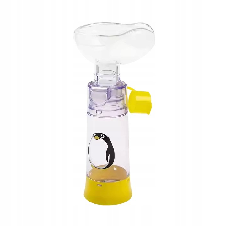 Gwizdek dla wysokiego przepływu powietrza: Dla dzieci zamontowaliśmy specjalny gwizdek, który sygnalizuje zbyt szybki wdech. Pomaga to najmłodszym pacjentom nauczyć się prawidłowego oddychania podczas inhalacji, a sam gwizdek dodatkowo sprawia, że proces jest bardziej atrakcyjny i zabawny.
