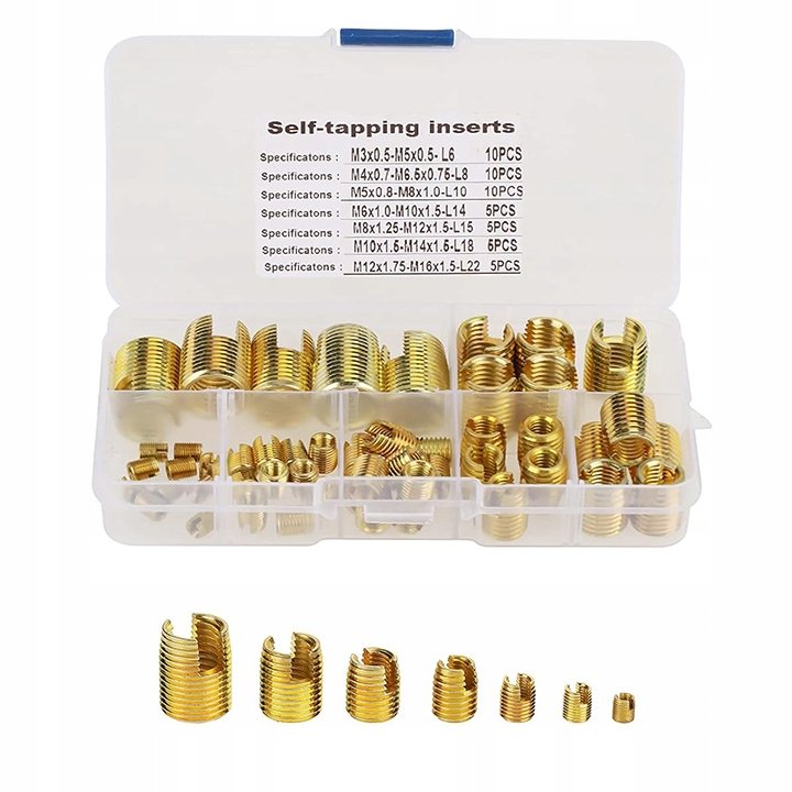 | Nazwa: | Tulejki do Naprawy Gwintu M3 M4 M5 M6 M8 M10 M12 Zestaw 50szt Naprawcze |