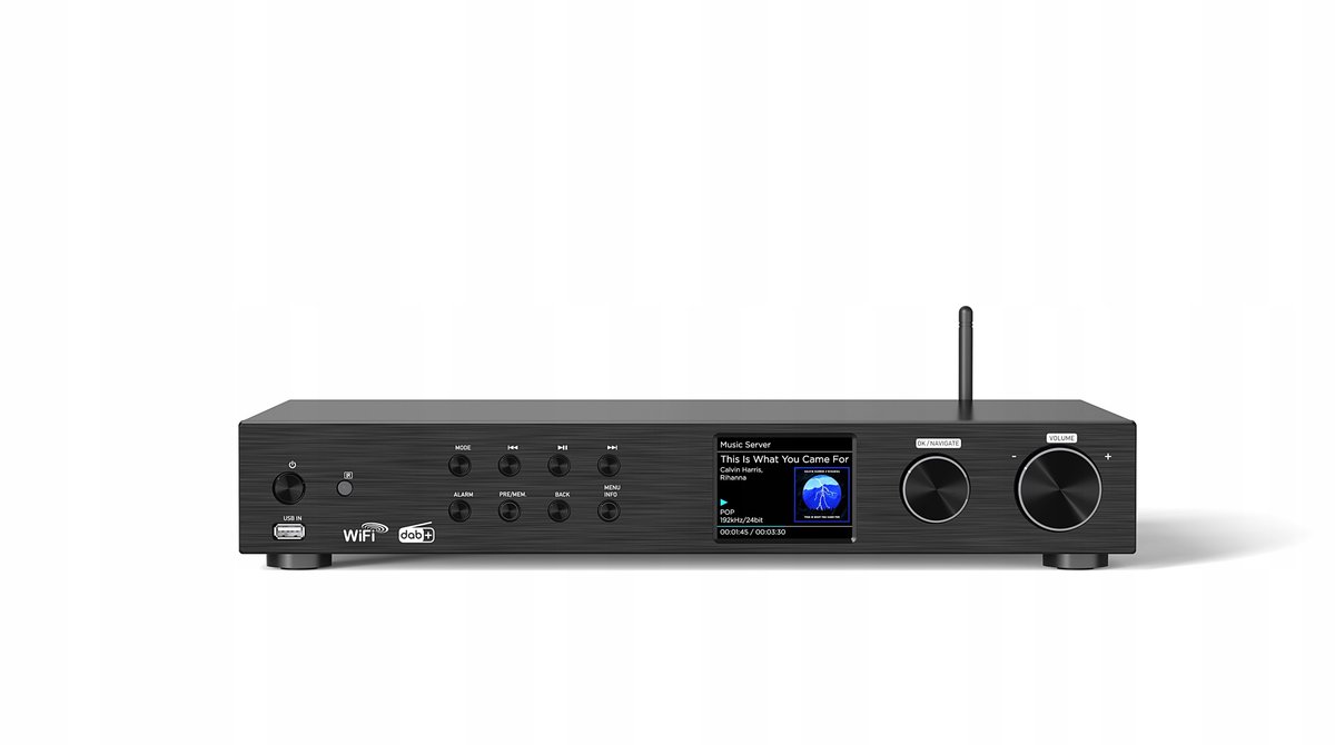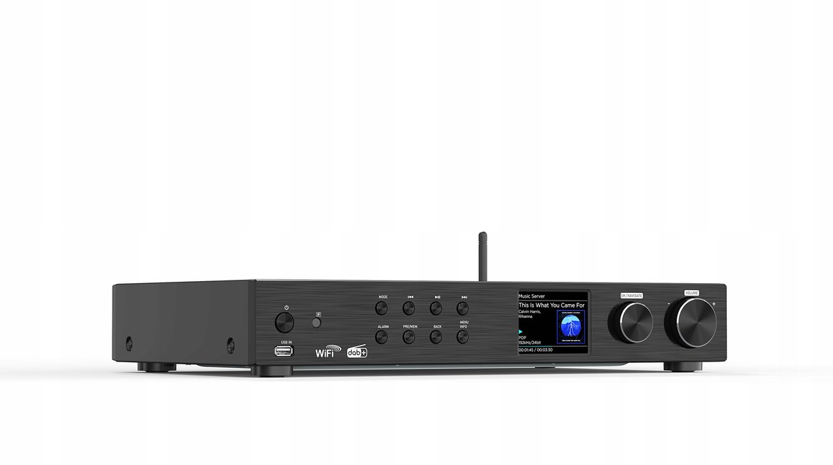 Tuner HiFi Maxxo posiada wbudowany korektor, dzięki któremu możesz dostroić dźwięk do swoich preferencji. Funkcje takie jak zegar, budzik czy czytnik RDS są oczywiste. Tuner Maxxo obsługuje strumieniowe przesyłanie muzyki z UPnP i DLNA dzięki zewnętrznej antenie Wi-Fi.