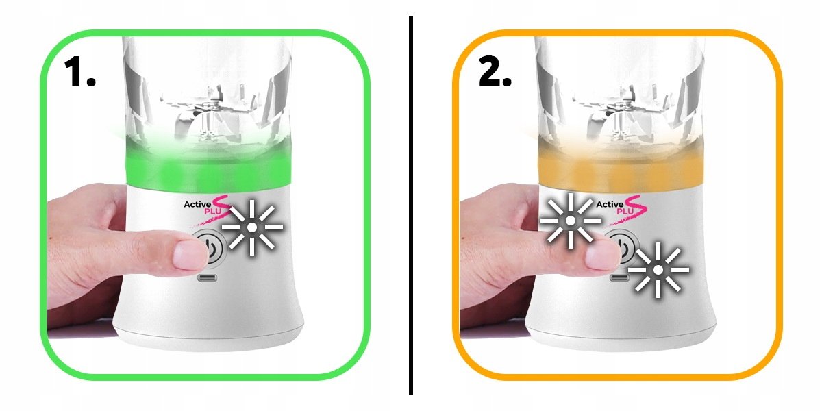 ⭐️ Drugi tryb, mieszania ręcznego, uruchomisz dwukrotnie naciskając przycisk. W blenderze zapalą się żółte diody. W tym trybie blender będzie działać tylko wtedy, gdy przytrzymasz przycisk POWER. Pozwoli Ci to zdecydować jak długo, oraz z jaką częstotliwością blender ma pracować.