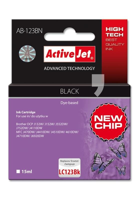 | Nazwa: | Tusz ACTIVEJET AB-123BN (Brother LC123BK/121BK), czarny, 15 ml |