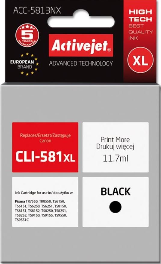 | Nazwa: | Tusz ACTIVEJET ACC-581BNX (CLI-581Bk XL), czarny, 11.7 ml |