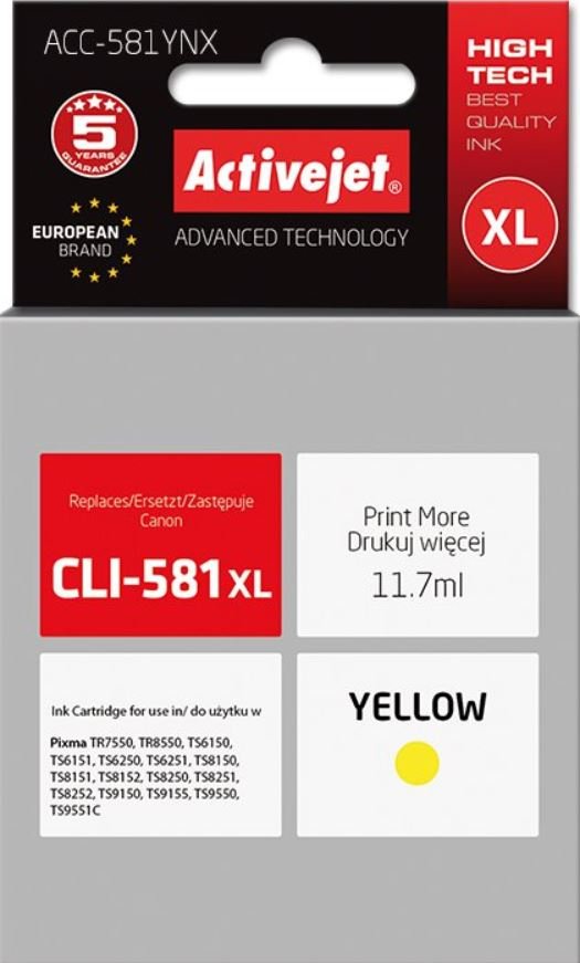 | Nazwa: | Tusz ACTIVEJET ACC-581YNX (CLI-581Y XL), żółty, 11.7 ml |