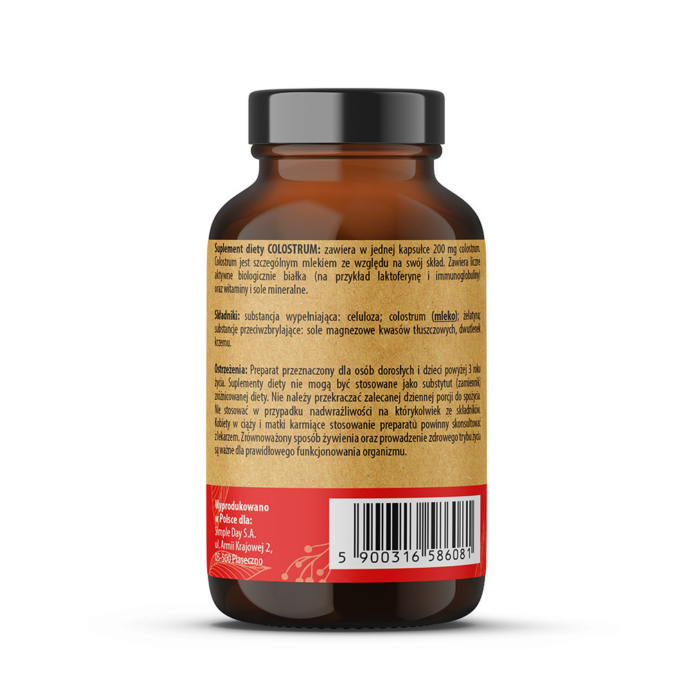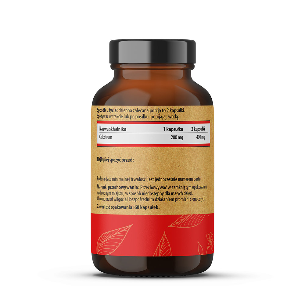 Oto COLOSTRUM - Twój naturalny sprzymierzeniec w dbaniu o pełnię zdrowia. W każdej z 60 kapsułek kryje się sekret natury, 200 mg colostrum w jednej kapsułce, dzięki któremu Twoje ciało odzyska harmonię i siłę. Niezawodne wsparcie dla każdego, kto chce czuć się świetnie każdego dnia!