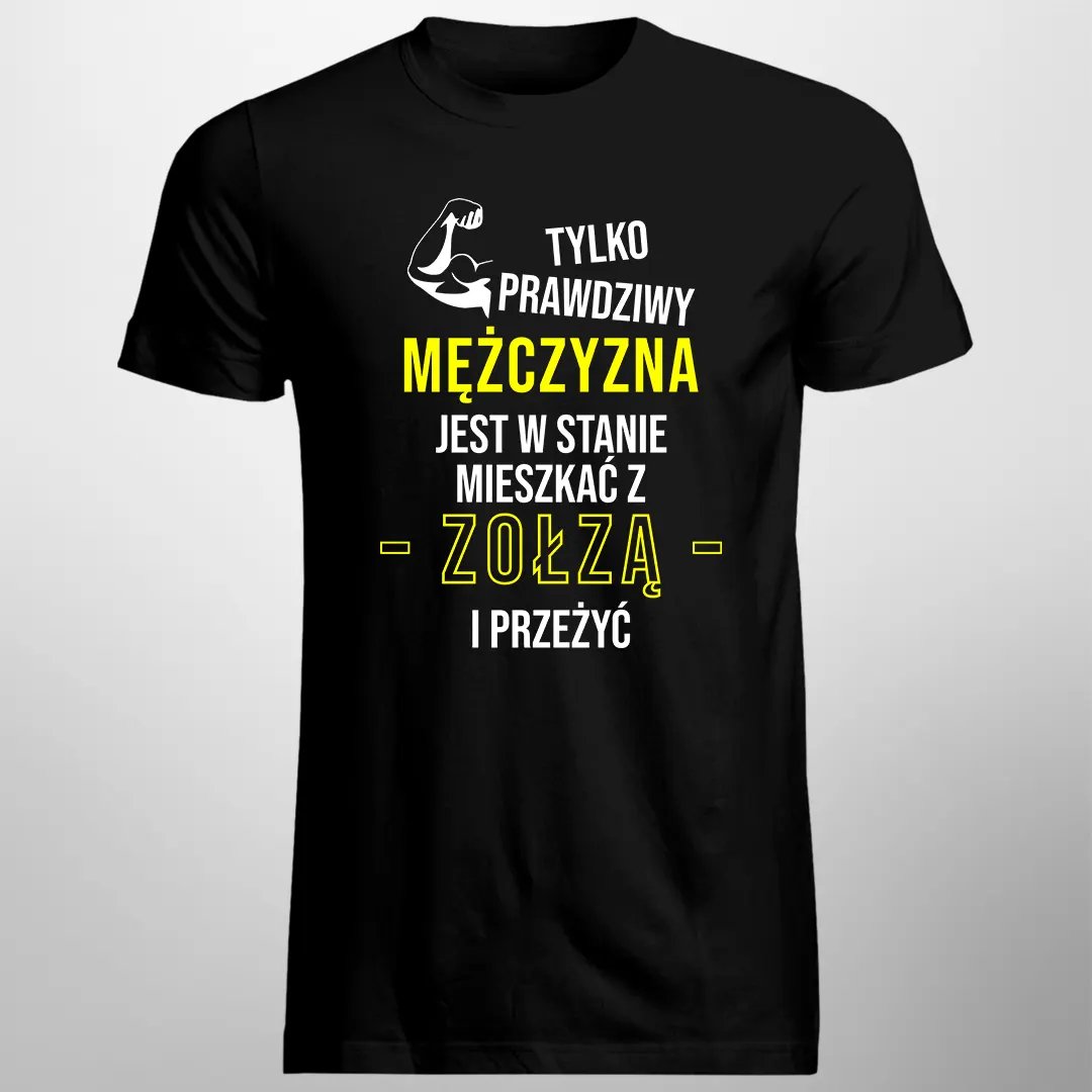 | Nazwa: | Koszulkowy, męska koszulka z nadrukiem Tylko prawdziwy mężczyzna jest w stanie mieszkać z zołzą i przeżyć, rozmiar XXXL koszulka dla chłopaka prezent na dzień chłopaka |