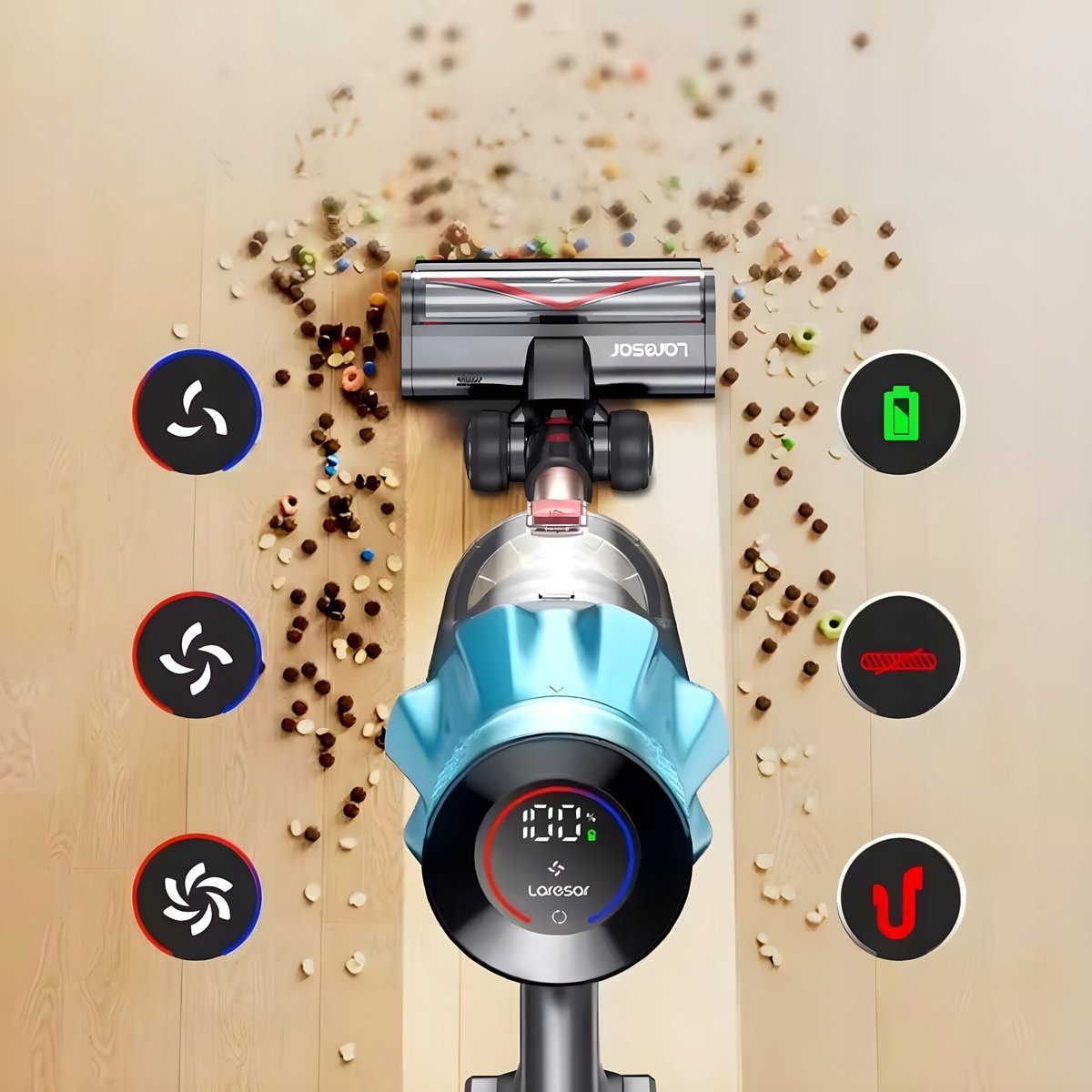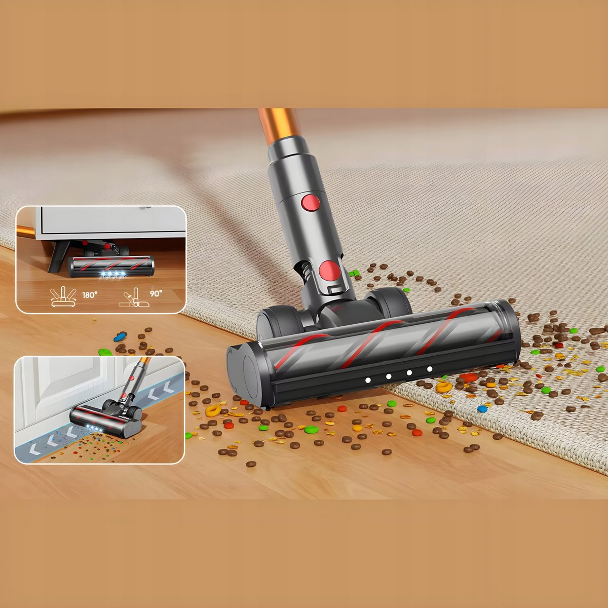 Odkurzacz LARESAR V7, został wyposażony w wielofunkcyjną szczotkę, która idealnie sprawdza się na różnych powierzchniach, od twardych podłóg po dywany.