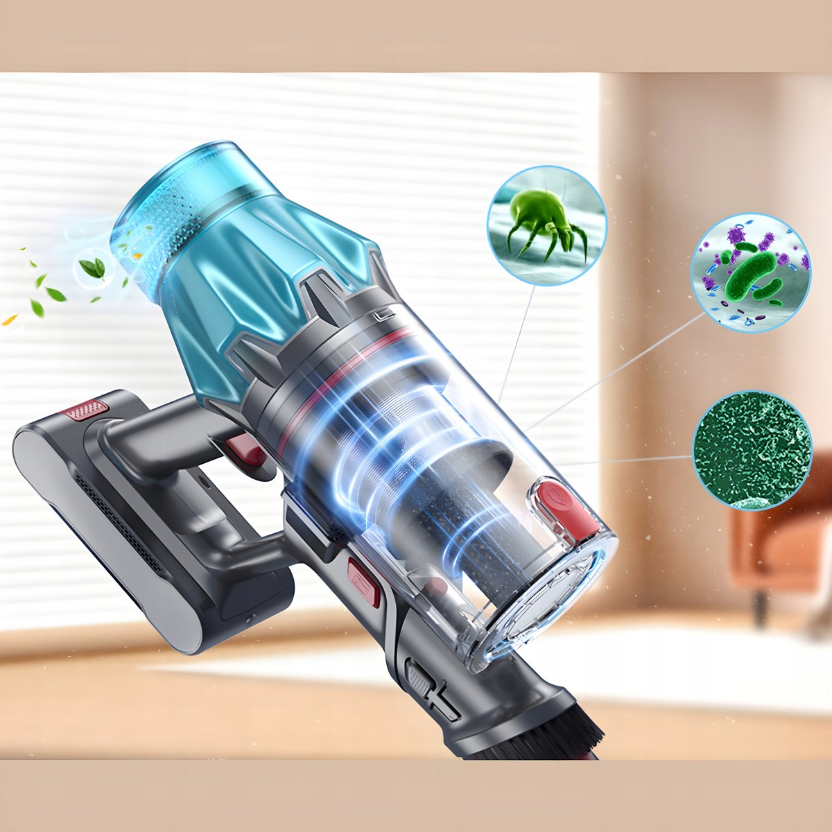 Odkurzacz Laresar V7 posiada zaawansowany, 7-stopniowy system filtracji powietrza, który skutecznie eliminuje alergeny, pyłki oraz inne drobne zanieczyszczenia, dzięki czemu powietrze w domu staje się czystsze i zdrowsze.