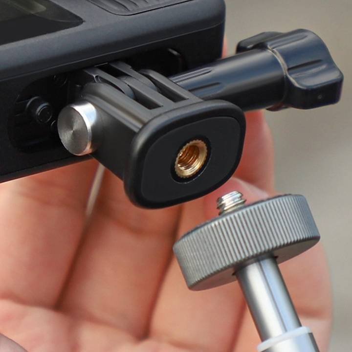 Zwiększ możliwości swojej kamery sportowej dzięki adapterowi montażowemu 1/4" z obrotem 360°. To kompaktowe i solidne akcesorium umożliwia szybki montaż na uchwycie magnetycznym, statywie, monopodzie lub innym urządzeniu z gwintem 1/4 cala.