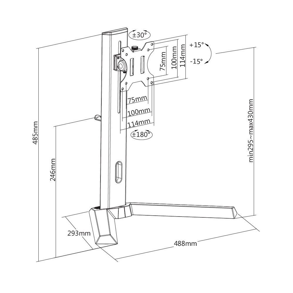 - Regulacja wysokości (środek płyty VESA): 295 – 430 mm