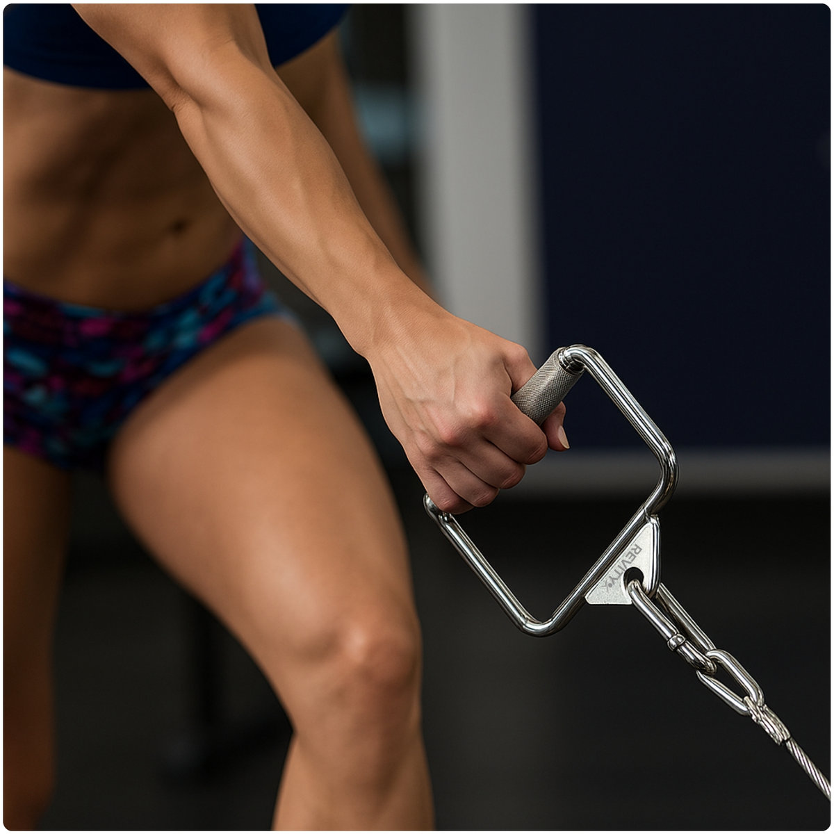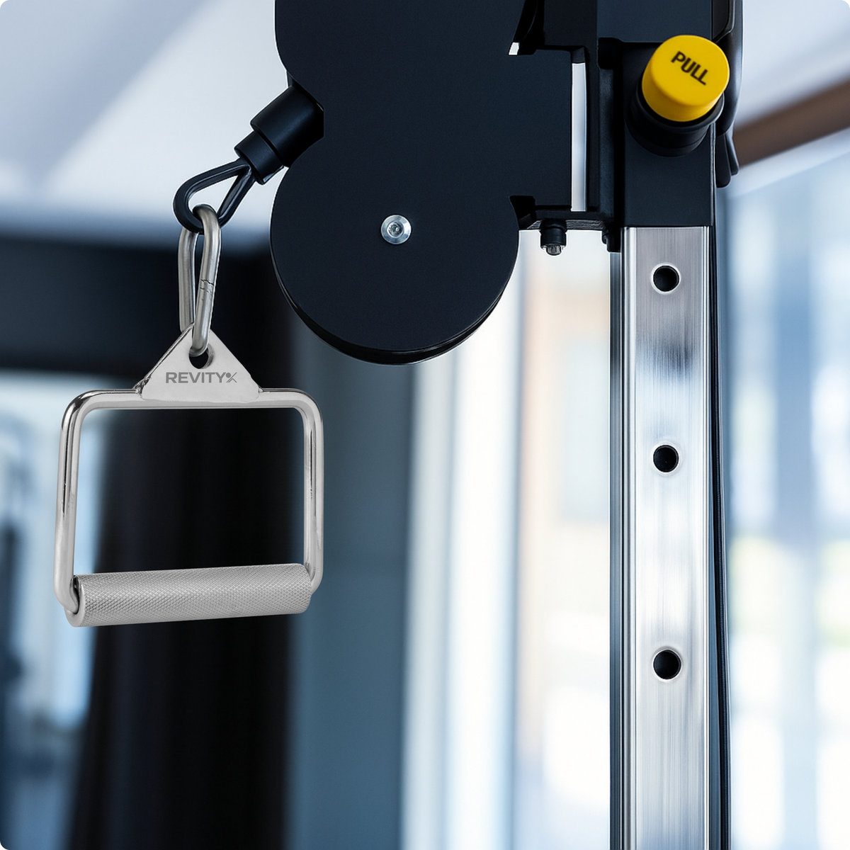 Stalowy uchwyt do wyciągu marki Revity to profesjonalne akcesorium treningowe przeznaczone do użytku z maszynami siłowymi wyposażonymi w system wyciągu górnego lub dolnego. Umożliwia wykonywanie szeregu ćwiczeń wzmacniających górne i środkowe partie ciała. Dzięki swojej konstrukcji zapewnia wygodny, bezpieczny i stabilny chwyt, nawet przy dużych obciążeniach. Obrotowa rączka 360° i radełkowanie zapewnia maksymalny komfort podczas ćwiczeń. Jest to niezbędny element wyposażenia każdej domowej i profesjonalnej siłowni, który pozwala zróżnicować trening i poprawić jego efektywność.