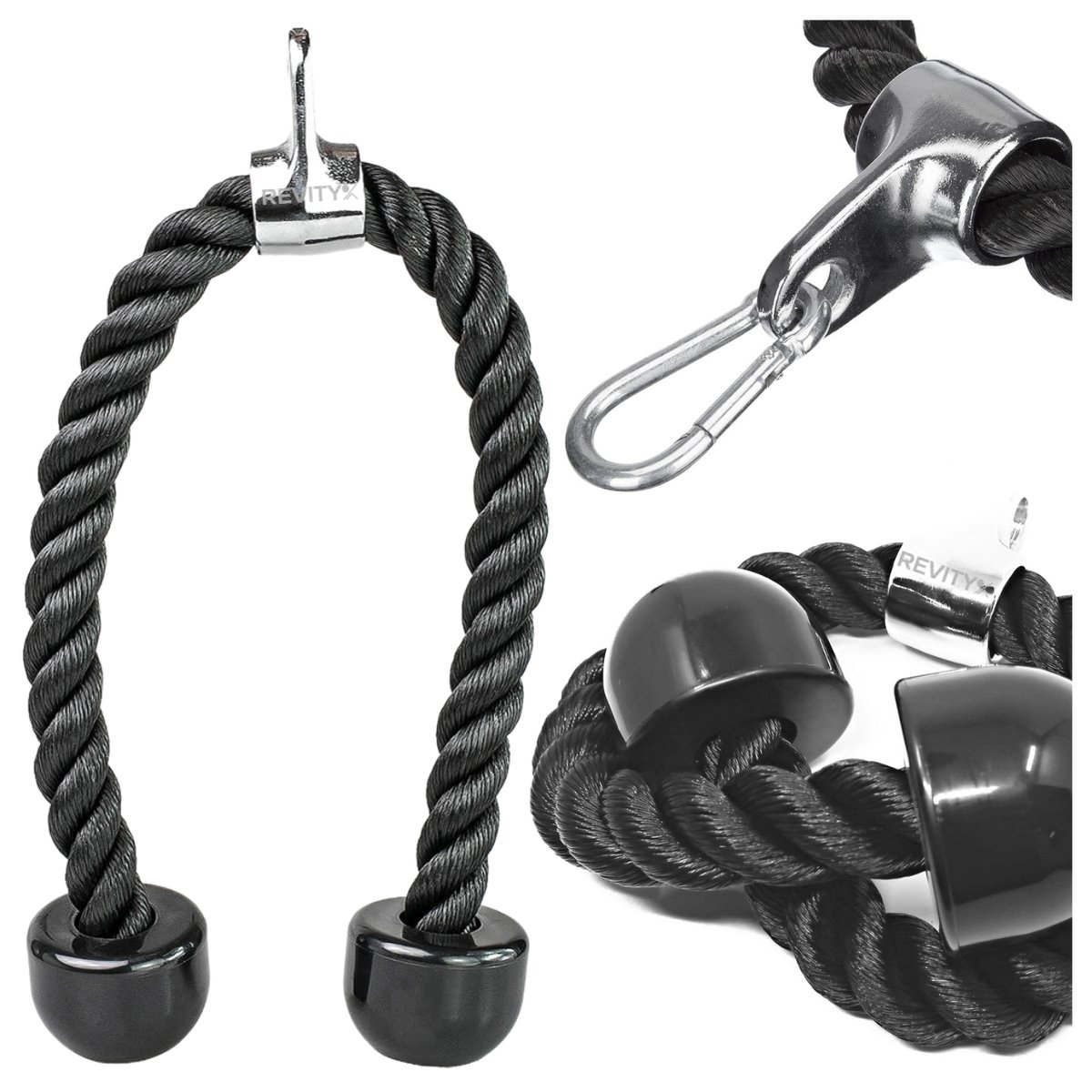 SZNUR UCHWYT DO WYCIĄGU LINA NA TRICEPS MASYWNA I SOLIDNA Z KARABIŃCZYKIEM 1. Czym jest ochraniacz Lina do Wyciągu od REVITY? Sznur (uchwyt) do wyciągu to profesjonalny niezbędnik ...