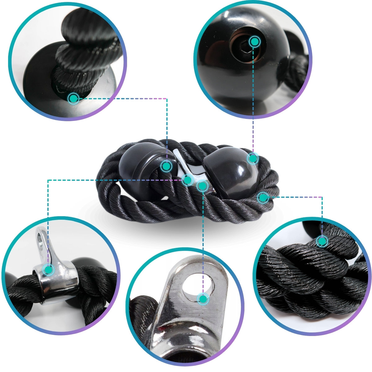 Sznur (uchwyt) do wyciągu to profesjonalny niezbędnik każdego miłośnika siłowni (zarówno domowej jak i tej profesjonalnej). Taka lina zwiększa funkcjonalność wyciągu dolnego i górnego o sporo ćwiczeń na triceps (np. prostowanie ramion z wyciągu górnego), biceps (np. uginanie ramion z wyciągu dolnego z wykorzystaniem chwytu młotkowego) czy mięśni prostych brzucha (tzw. allahy).