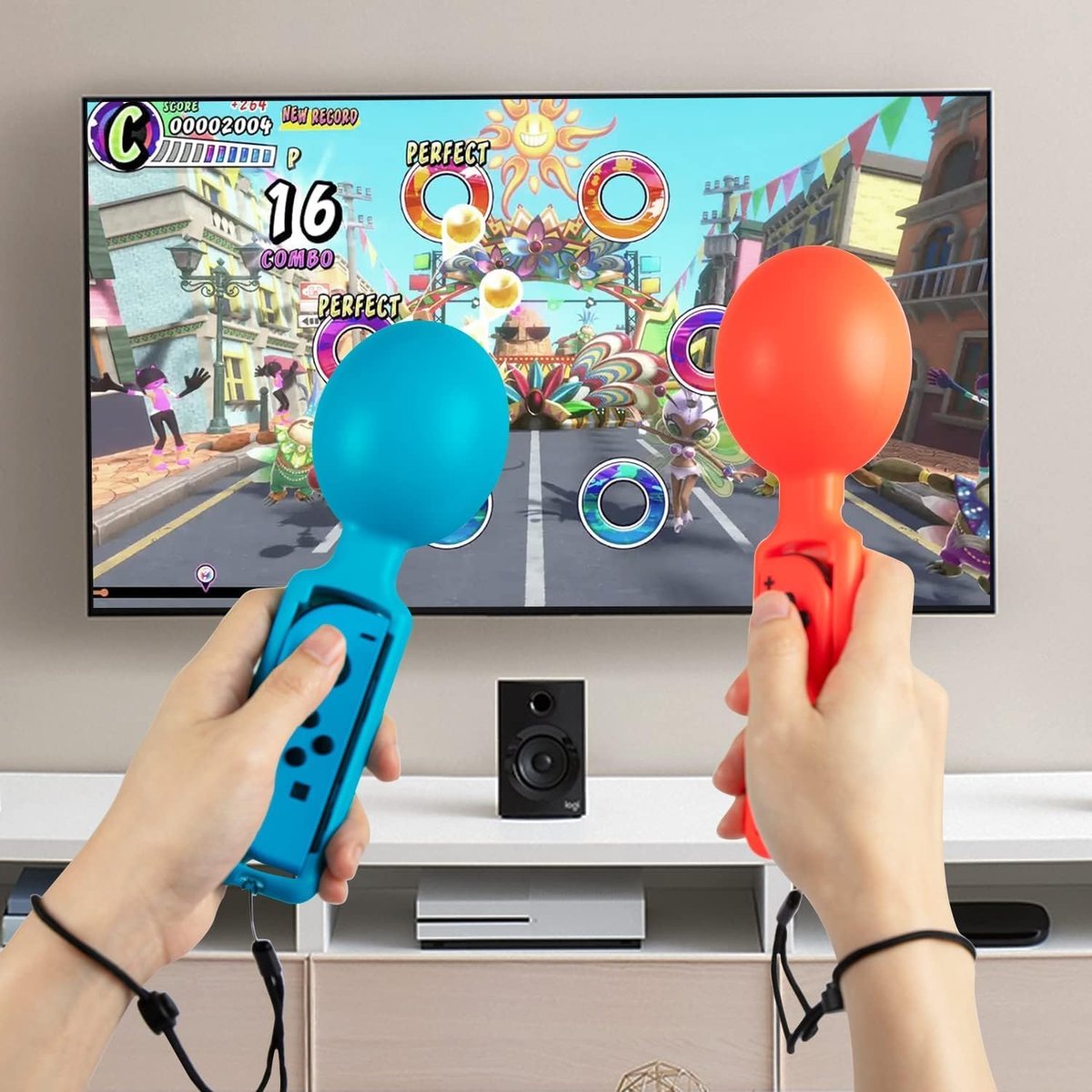 UCHWYT MARAKSY JOY-CON JOYCON NINTENDO SWITCH SAMBA NIEBIESKI CZERWONY 2szt Najlepsze akcesoria do gry Switch Samba de Amigo Marakasy Samba de Amigo zostały specjalnie ...