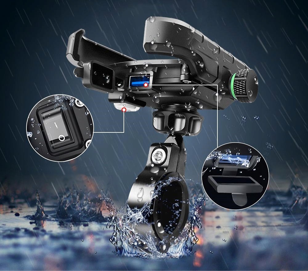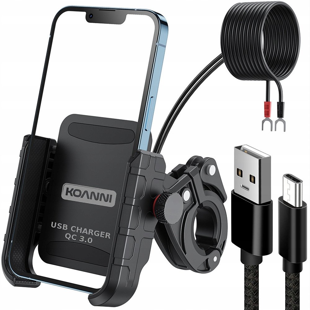 Zaletą uchwytu jest wodoodporne gniazdo USB szybkiego ładowania QC3.0, dzięki któremu już nigdy nie rozładuje Ci się telefon podczas wyprawy. Uchwyt posiada włącznik ON/OFF i kabel o długości 150cm zakończony "oczkami" pod klemy akumulatora i bezpiecznikiem. Posiada zabezpieczenia przeciw przeładowaniu i zbyt dużemu napięciu.