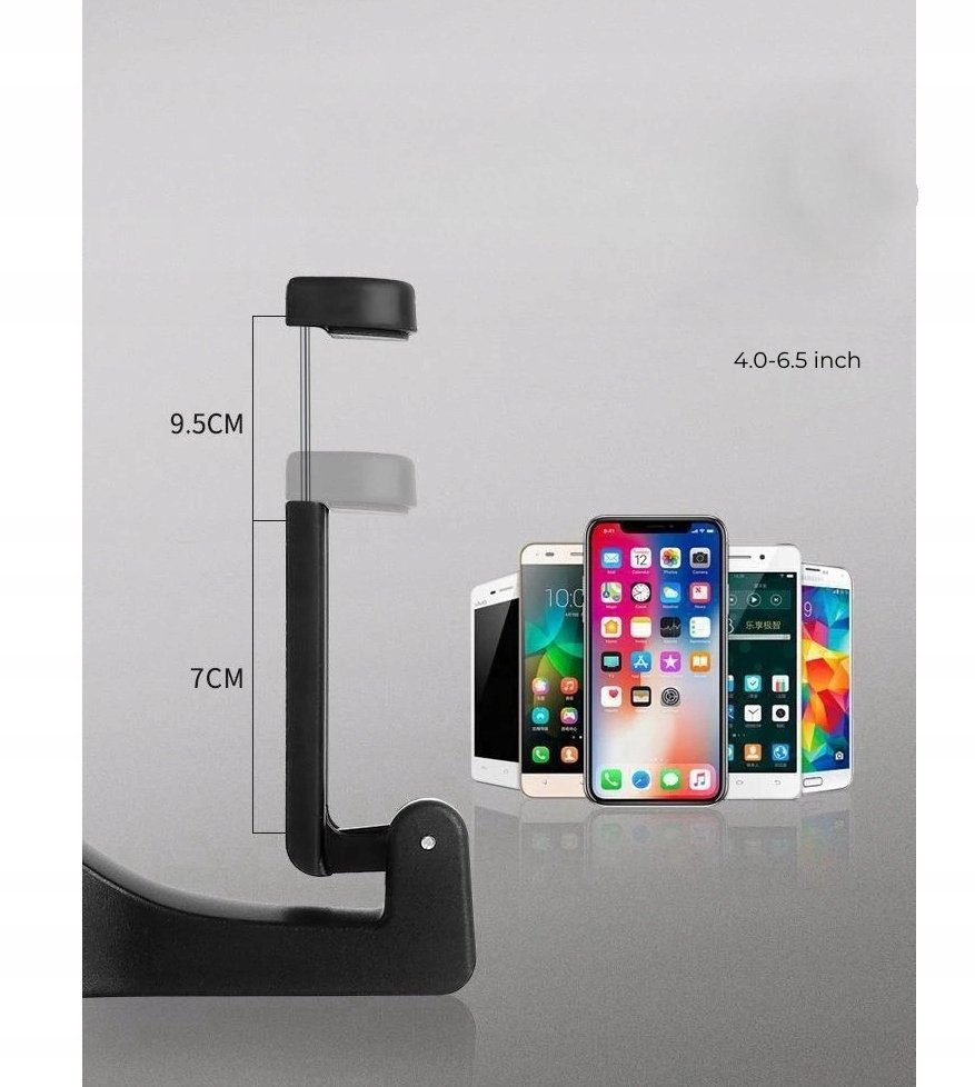 - Regulacja: Uchwyt jest regulowany i pasuje do większości telefonów o przekątnej ekranu od 4.0 do 6.5 cala, co umożliwia korzystanie z różnych modeli telefonów.
