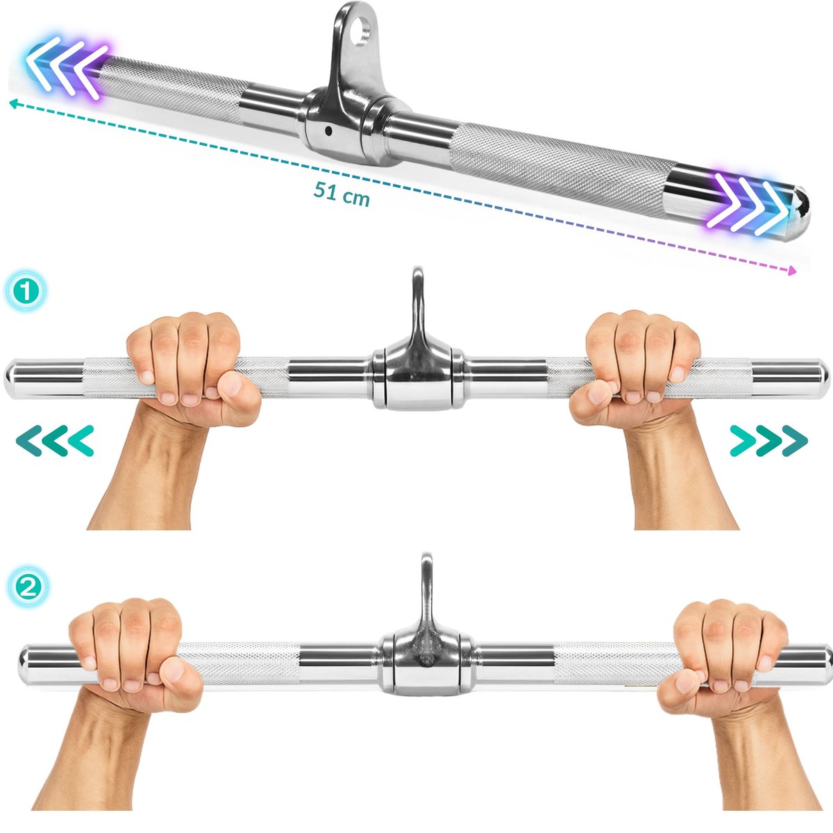 UCHWYT DO WYCIĄGU ATLASU STALOWY PROSTY DRĄŻEK OBROTOWY DO ĆWICZEŃ 51 cm