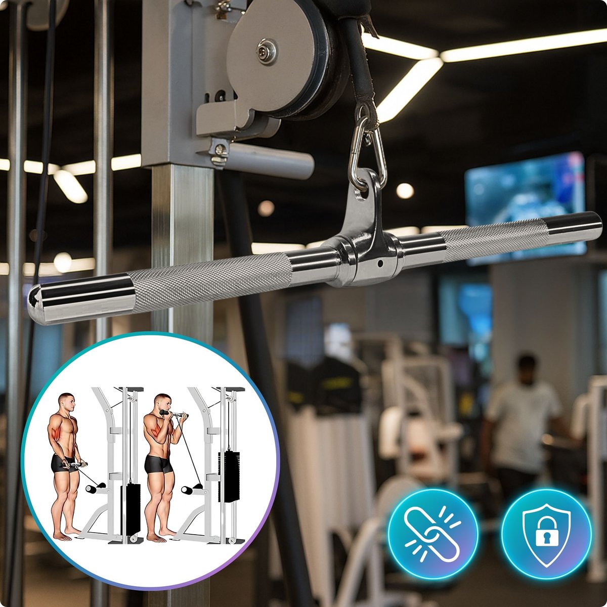 ✅ SZEROKIE MOŻLWIOŚCI WYKORZYSTANIA - pasuje do większości atlasów i wyciągów – zarówno górnych, jak i dolnych. Doskonały wybór do ćwiczeń rozwijających mięśnie pleców, ramion, tricepsów, bicepsów oraz barków.