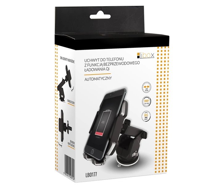 Uchwyt automatyczny z ładowarką Libox LB0177 Cechy produktu: Przyssawka umożliwiająca montaż na szybie lub desce rozdzielczej, Uchwyt do kratki wentylacyjnej, Ładowanie bezprzewodowe Qi, ...