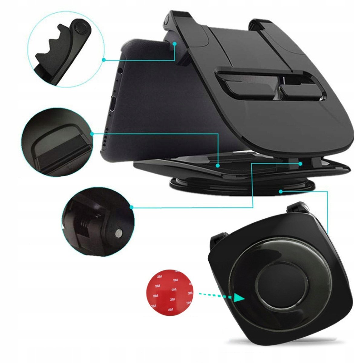 ✅Przyklejamy go do deski rozdzielczej, co zapewnia stabilność i pewność, że Twój telefon lub nawigacja nie przesuną się w trakcie jazdy.