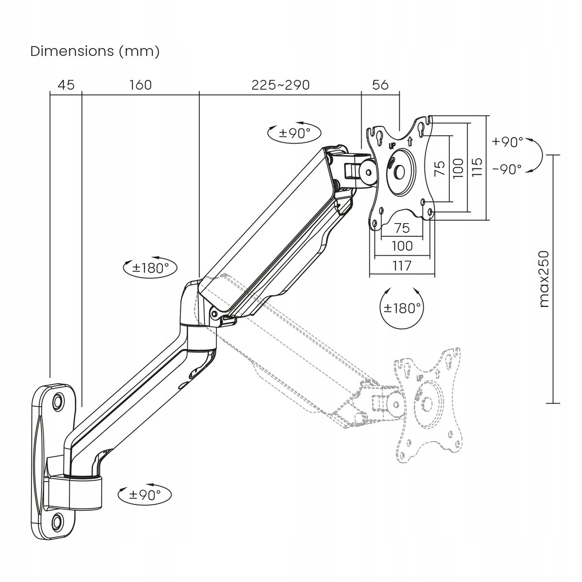 Uchwyt ścienny monitora 17-32 9kg podwójne długie ramię MC-332