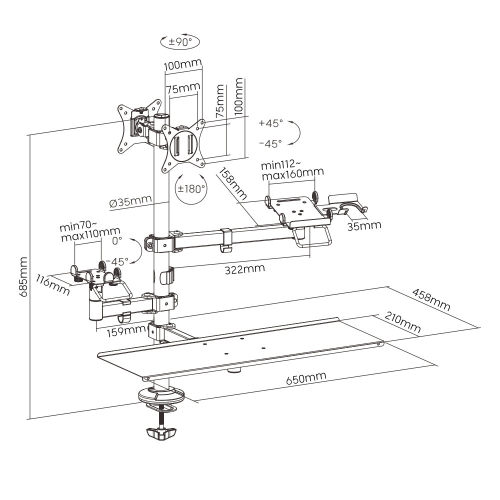 Uchwyt Biurkowy POS na Dwa Ekrany, Klawiaturę, Terminal i Drukarkę - Spacetronik SPA124 Zwiększ efektywność i profesjonalizm swojej działalności dzięki naszemu uchwytowi do montażu POS - Spacetronik ...
