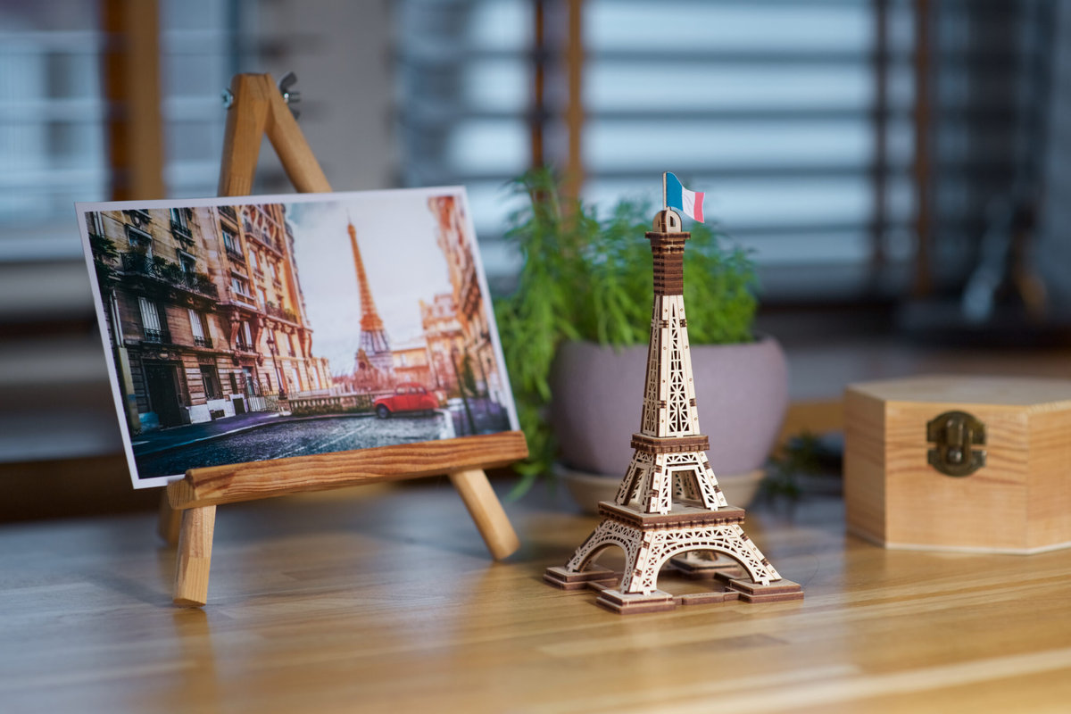 Model wieży Paryskiej od UGERS z kolekcji World Cities to drewniany model do samodzielnego montażu w skali 1:1850 przedstawiający kultową wieżę o wysokości 180 mm. Składająca się z 50 elementów wykonanych z drewna kompozytowego o jakości artystycznej, Wieża Paryska jest oceniana jako “łatwa” do złożenia i można ją zbudować w około 25 minut.