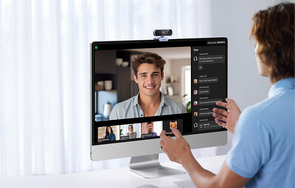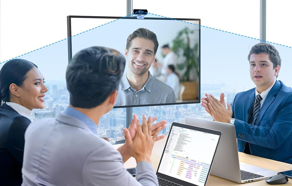 Kamera umożliwia obrót o 360° oraz regulację kąta nachylenia w zakresie 15°, co pozwala na idealne dopasowanie kadru. Szeroki kąt widzenia 85° sprawia, że kamera doskonale sprawdzi się podczas wideokonferencji z udziałem wielu osób, umożliwiając płynną i wygodną komunikację grupową.