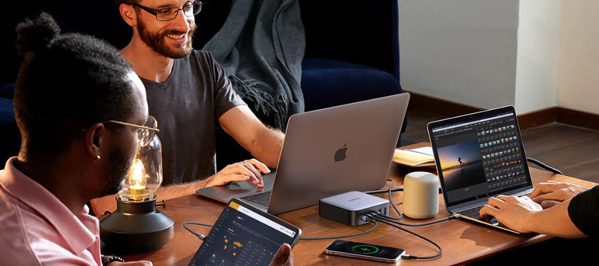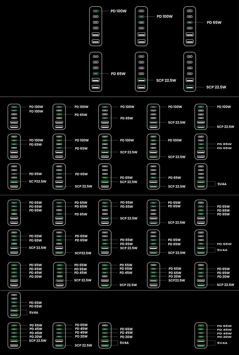 - szybkie ładowanie: ta ładowarka biurkowa o mocy 200 W obsługuje maksymalnie 100 W mocy wyjściowej na port dla portu C1/C2, co pozwala na pełne naładowanie dwóch 16-calowych MacBooków Pro 2021 w zaledwie 1,5 godziny w tym samym czasie, czyli znacznie szybciej niż w przypadku innych ładowarek.