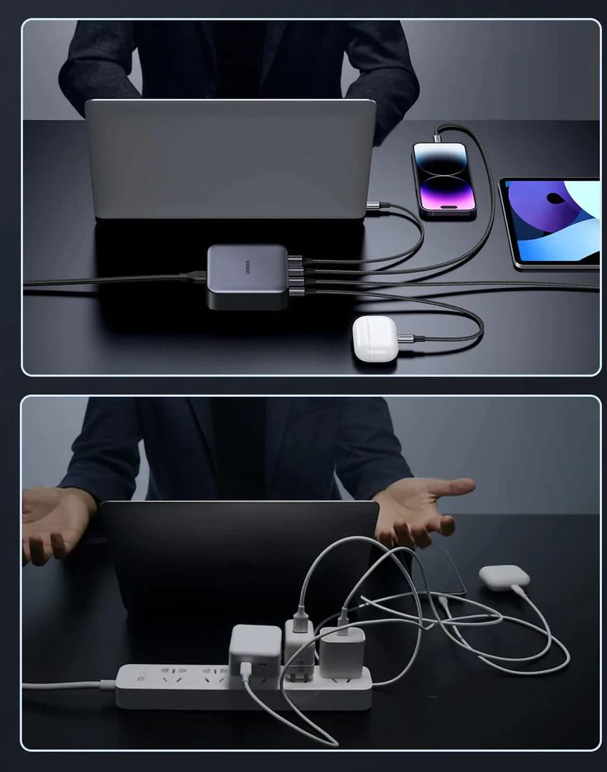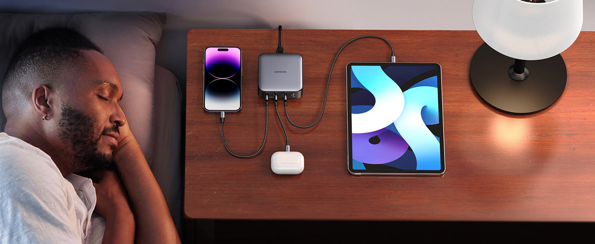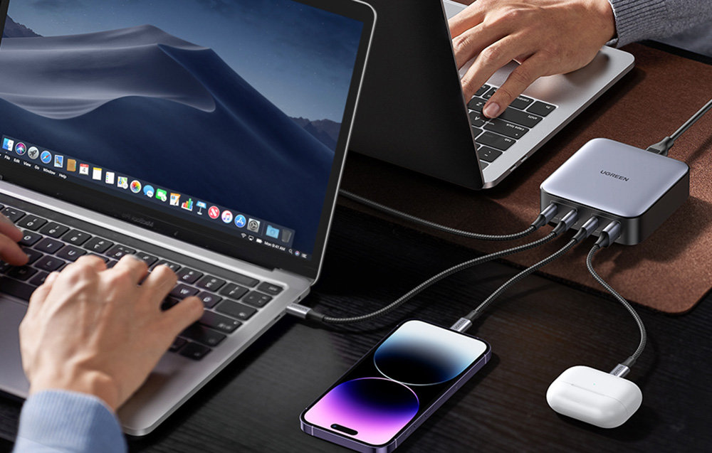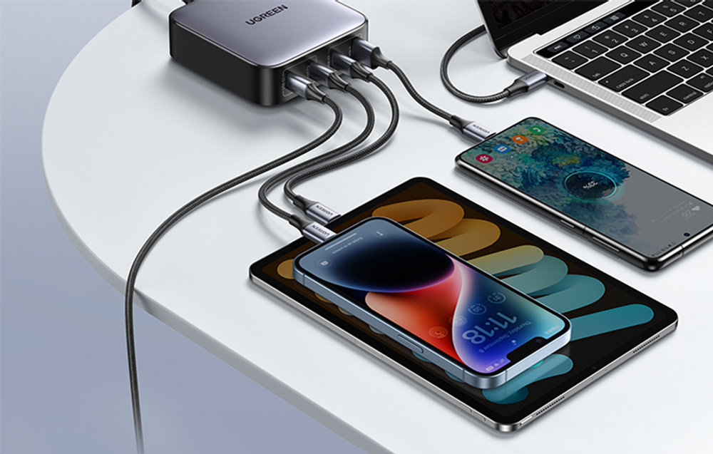 Dzięki temu, że ładowarkę UGREEN wyposażono w 3 porty USB-C i 1 port USB-A, produkt cechuje duża uniwersalność. Za pomocą modelu CD328 naładujesz między innymi laptopy marek Apple, Huawei, Xiaomi i Lenovo, smartfony marek Apple, Huawei, Xiaomi i Samsung, tablety Apple oraz konsole do gier Nintendo Switch i Steam Deck. Korzystaj z wielu możliwości, które oferuje CD328 i błyskawicznie ładuj kilka urządzeń jednocześnie!