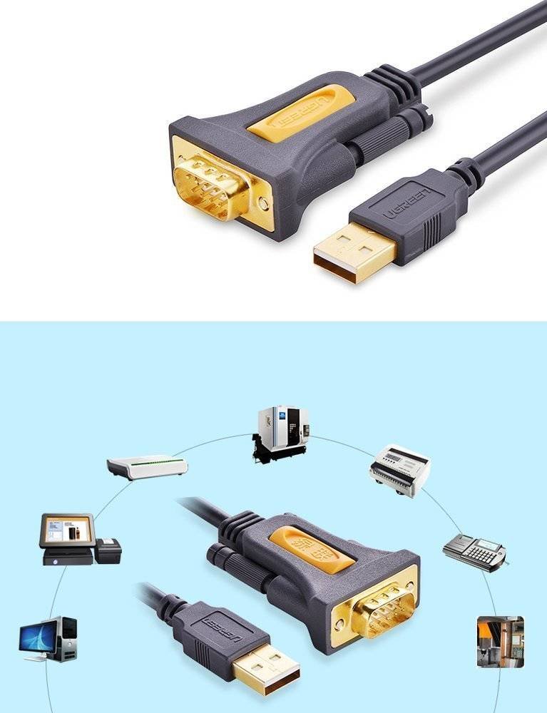 Ugreen kabel przejściówka adapter USB - RS-232 (męski) 2 m CR104 Kabel z szeregowym portem RS-232, który można podłączyć do wtyczki USB w komputerze. Dzięki temu za pomocą komputera będziesz w stanie