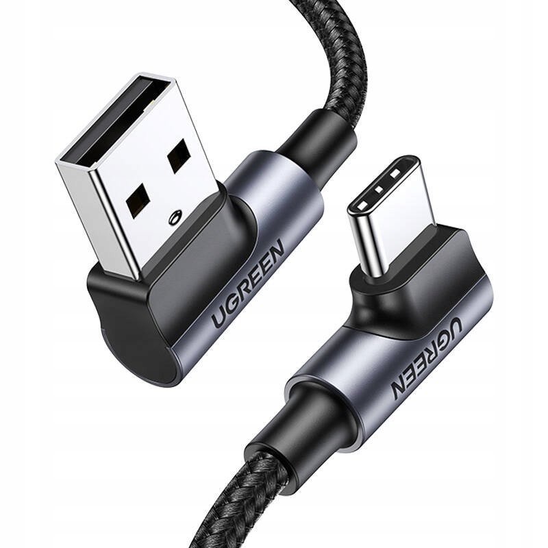 Ugreen kątowy kabel przewód USB - USB Typ C Quick Charge 3.0 QC3.0 3 A 0,5 m Kabel USB - USB Typ C z wtyczkami wygiętymi pod kątem 90 stopni. Szybkie ładowanie - kabel pozwala na szybkie ładowanie ...