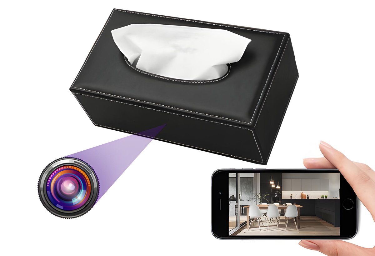 Nazwa: UKRYTA KAMERA WIFI W PUDEŁKU OD CHUSTECZEK CHUSTECZNIK PODGLĄD NA ŻYWO