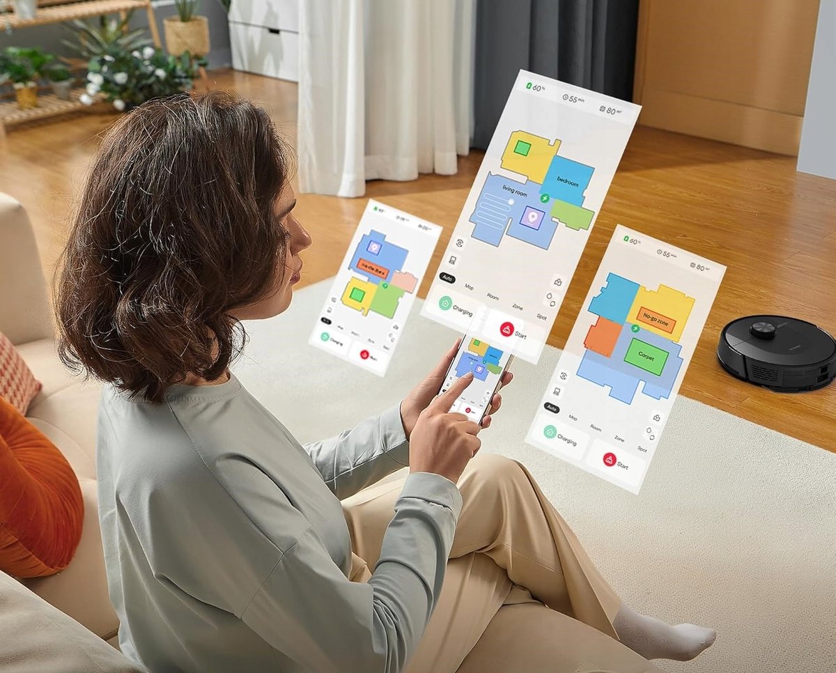 Nasz robot odkurzający automatycznie zwiększa moc ssania na dywanach, zapewniając optymalne efekty czyszczenia.