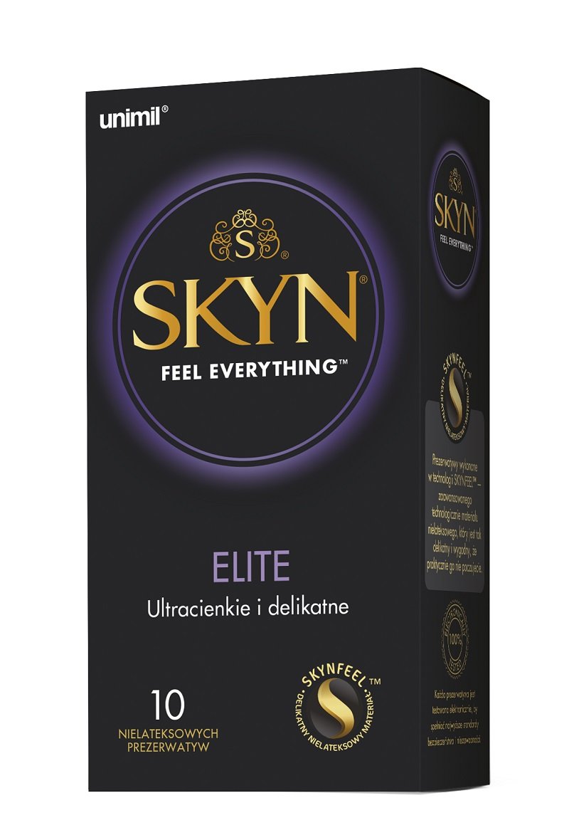 Unimil SKYN Elite to ultracienkie i delikatne prezerwatywy nielateksowe, które zapewniają wyjątkowo naturalne i prawdziwie intymne doznania. Nowa generacja produktów Unimil SKYN to prezerwatywy wykonane z cienkiego, miękkiego i elastycznego materiału SKYNFEEL™, który idealnie dopasowuje się do ciała. Połączenie wytrzymałości najlepszego lateksu z delikatnością bardzo cienkiej prezerwatywy oferuje jeszcze lepsze przeżycia seksualne. Stosowanie nielateksowych prezerwatyw Unimil SKYN zapewni naturalne doznania bez ryzyka pojawienia się podrażnień skóry. Mogą być używane przez osoby z nadwrażliwością na lateks.