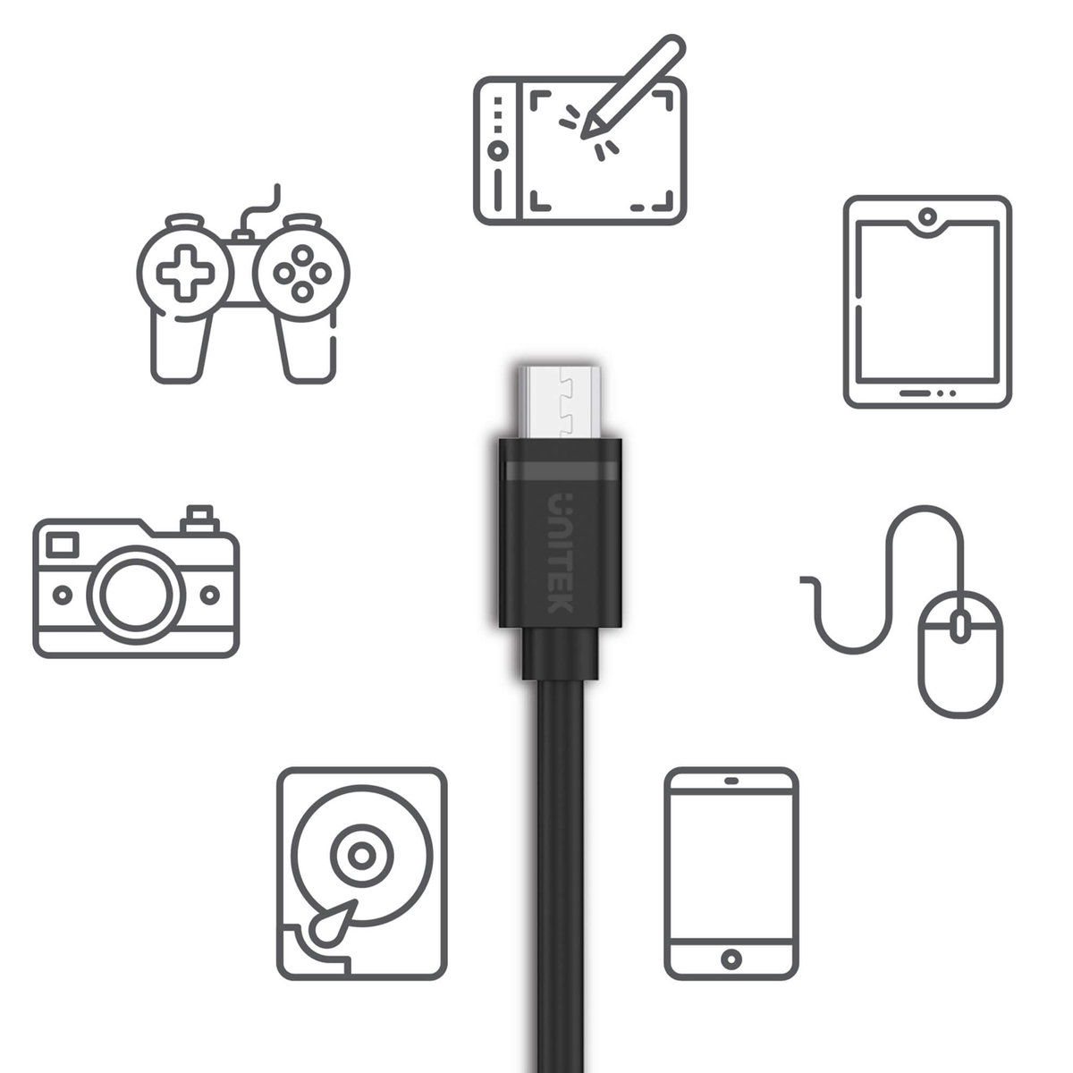 WielofunkcyjnyPrzewód microUSB – USB typu C o długości 1 metra służy do