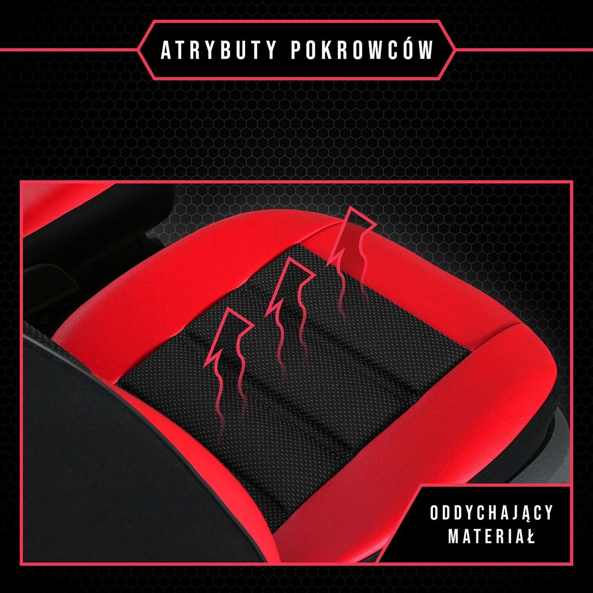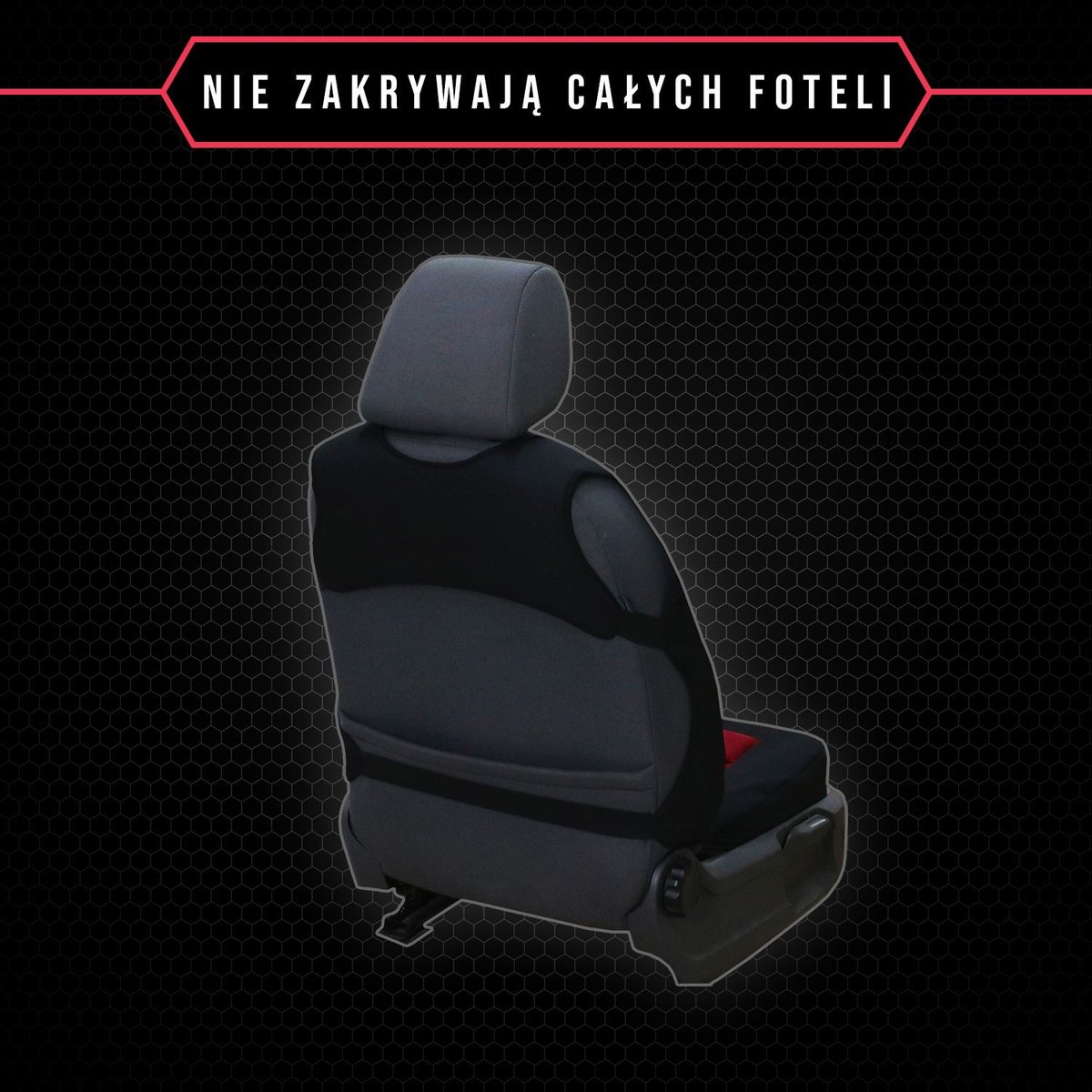 · Mata ochroni najbardziej narażone na zniszczenia elementy foteli - fronty, boki jak i cała powierzchnia siedziska są przykryte materiałem w połączeniu z eko skórą, dzięki czemu zabezpieczają oryginalną tapicerkę przed zabrudzeniem oraz uszkodzeniami;