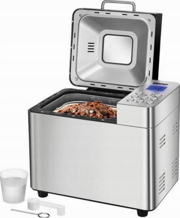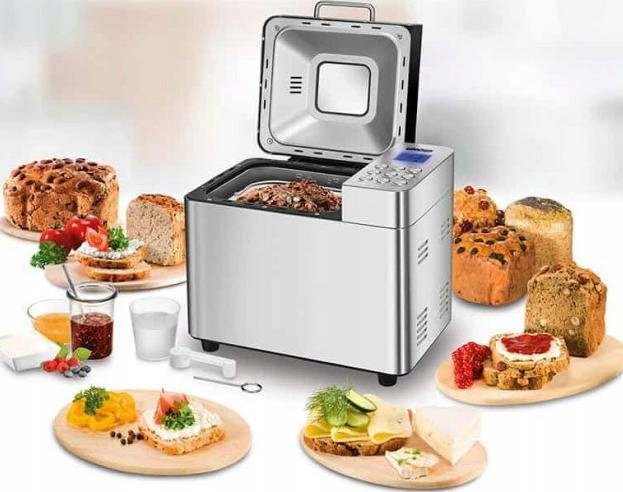 - konstrukcja: misa z powłoką nieprzywierającą, wyświetlacz LCD, pokrywa z okienkiem, obudowa ze stali nierdzewnej, wyjmowana misa na chleb, ostrze z powłoką ceramiczną