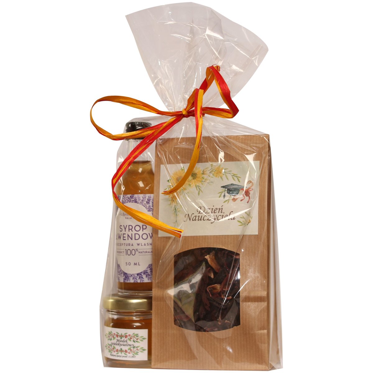 Prezent dla nauczyciela Zestaw dla nauczyciela składa się z:✔️ miodu wielokwiatowego z kolorową grafiką o pojemności 40ml z polskiej pasieki, ✔️ smacznej herbaty hibiskus 40g (orzeźwiający, ...