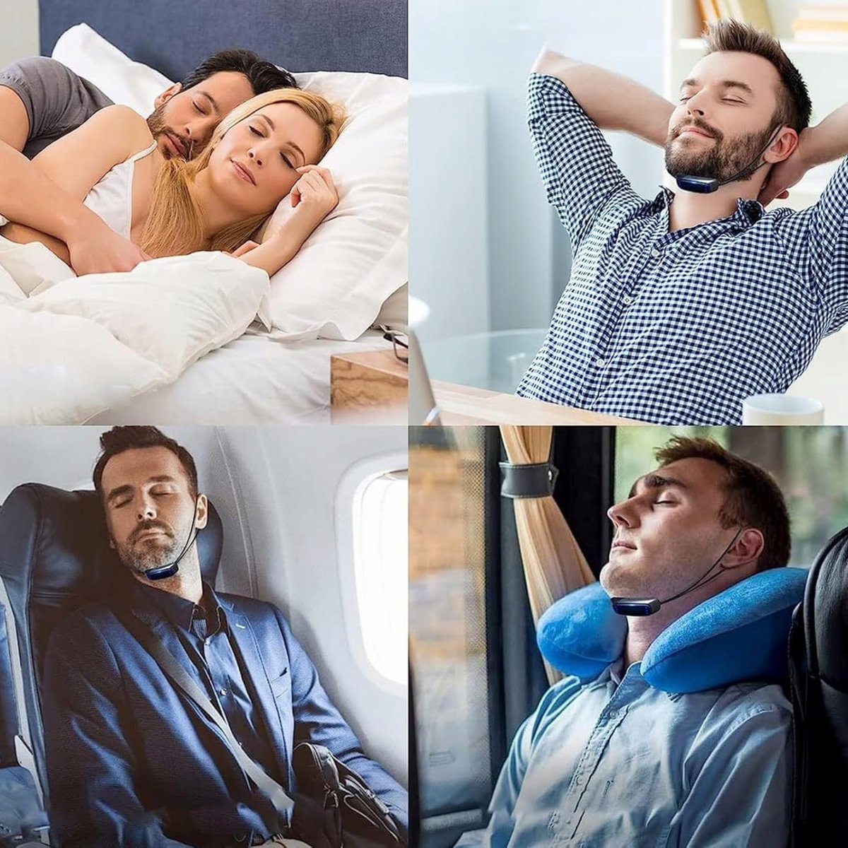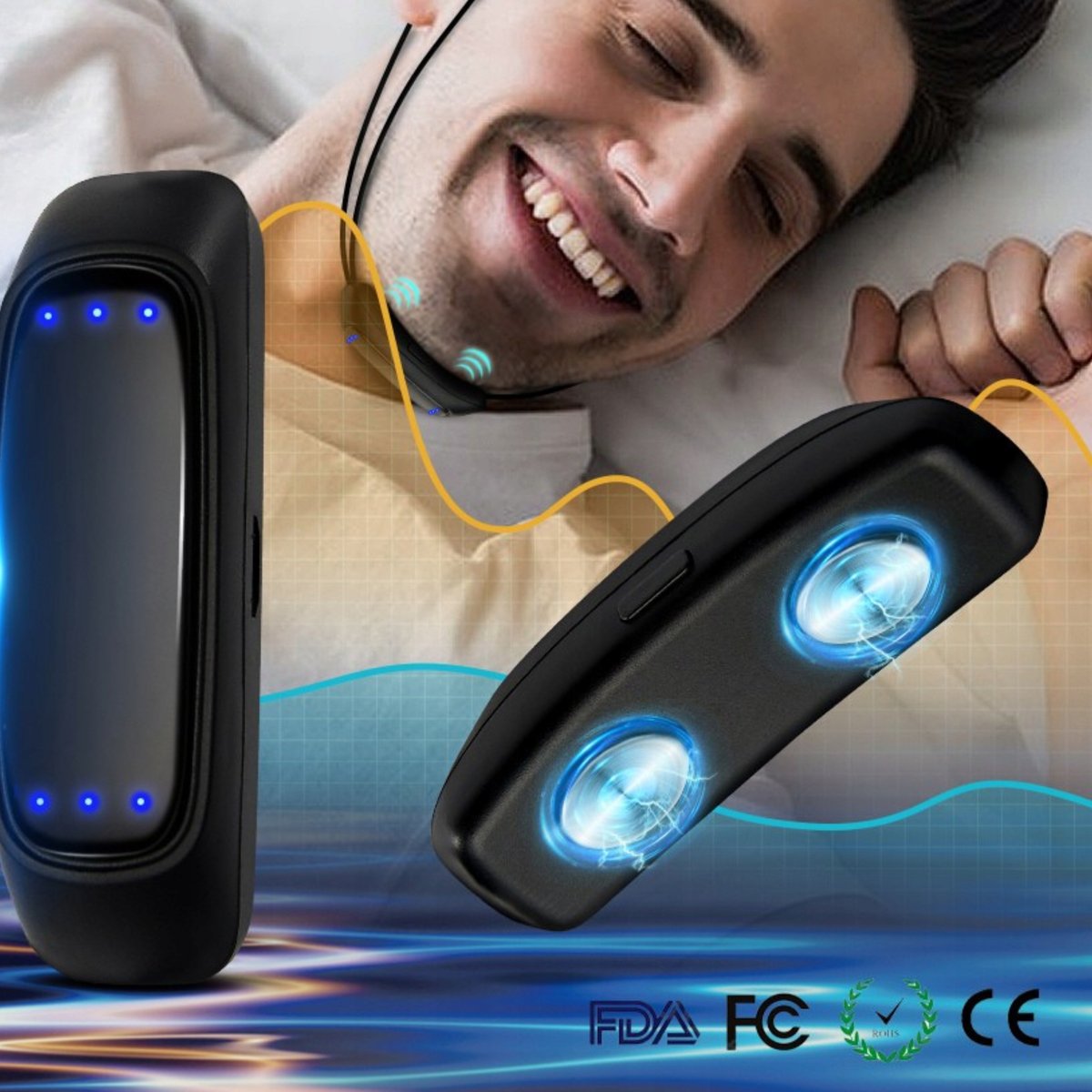 Produkt automatycznie i dokładnie wykrywa chrapanie za pomocą precyzyjnych czujników. Masuje nerwy i mięśnie szczęki za pomocą impulsów wibracyjnych o różnych częstotliwościach, aby zacisnąć mięśnie oraz dostosować rytm oddychania. Sprawia, że oddychanie jest bardziej płynne.