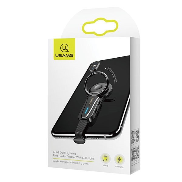 | Nazwa: | USAMS Adapter AU08 2w1 Lightning LED 2 x lightning + ring holder czarny/black SJ355LN01 (US-SJ355) |