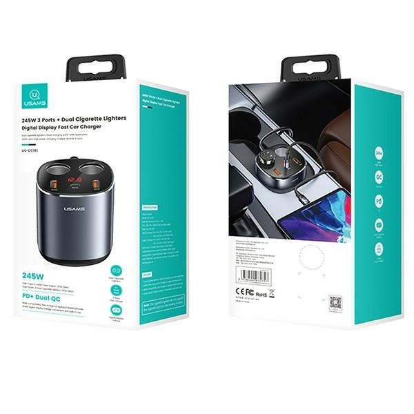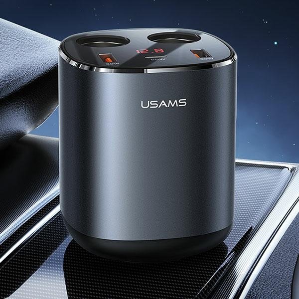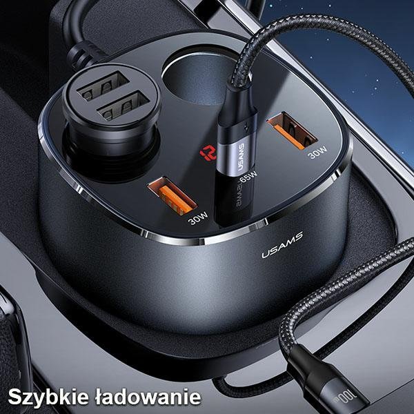 USAMS US-CC151 rozgałęziacz + ładowarka samochodowa.Kompaktowa ładowarka samochodowa 5w1 posiada dwa rozgałęziacze do gniazda zapalniczki, dwa porty USB o mocy 30W i jedno wejście USB-C o mocy 65W. ...