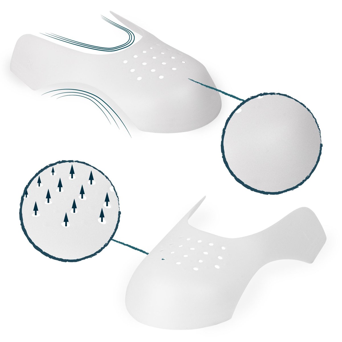 - otwory wentylacyjne, aby buty były suche i oddychające, zapobiegając parowaniu i wilgoci, sprawiając, że buty są świeże i wygodne.